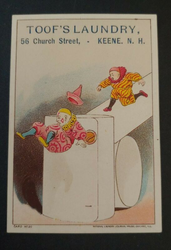 Title (ebay affiliate link): Trade Card TOOF''S LAUNDRY, KEENE NH - LITTLE CLOWNS CHASING EACH OTHER