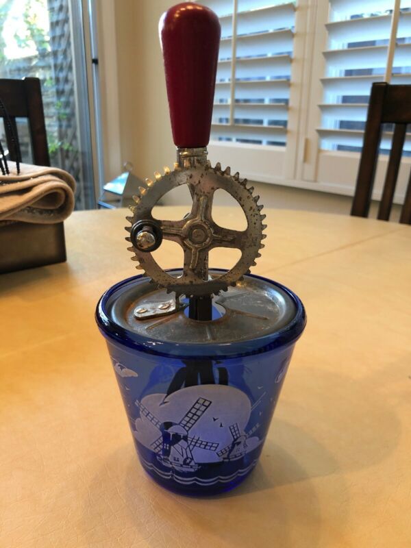 Title (ebay affiliate link): Hazel Atlas Dep Era Cobalt Blue Dutch Windmills Collection: Beater w/ red handle