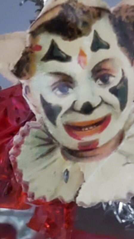 Title (ebay affiliate link): Small Early 1890''s German CLOWN Double Sided Paper Tinsel Cellophane Ornament 1