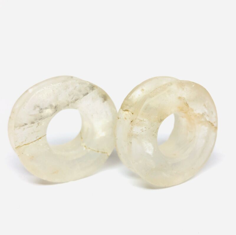Pre-Columbian Mayan Rock Crystal Quartz Translucent Earspools Piercing Accessory