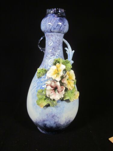 Vintage - Antique - Ceramic Vase w/ Raised Flowers - 9" Tall - Austria