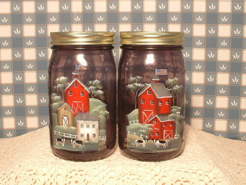 BALL AMERICAN HERITAGE PURPLE QUART CANNING JARS,COUNTRY FARMS PAINTED FOLK ART.