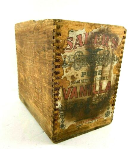 Title (ebay affiliate link): Antique Sauers Vanilla Crate Advertising Storage Wooden Baking Spice Advertising