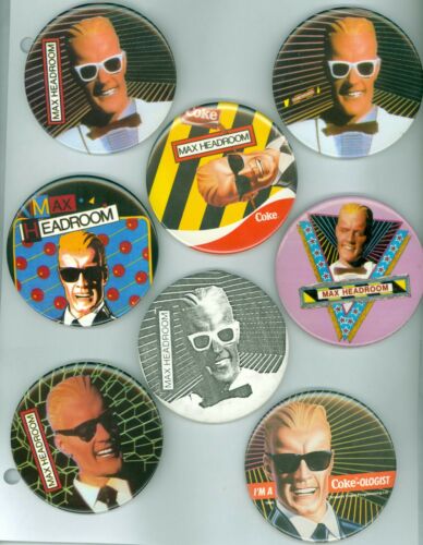 Title (ebay affiliate link): 8 Vintage 1985 Assorted Coca-Cola Advertising Pinback Buttons - MAX Headroom