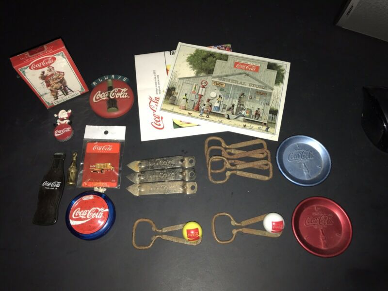 Title (ebay affiliate link): COKE Coca Cola Smalls Lot Yo-yo Coasters Cards Bottle Opener Pin Marbles Magnets