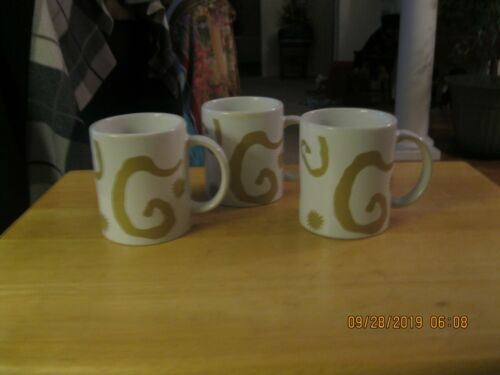 3--- Oscar De La Renta Cups, White with Gold Designs.