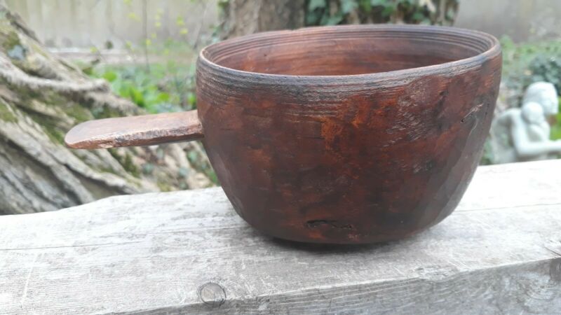 Title (ebay affiliate link): Primitive Wooden Cup Bowl Turned Carved One Handle 5.5" Rustic Scoop Measure