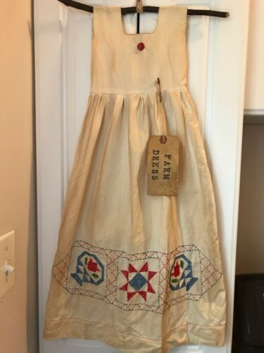 Title (ebay affiliate link): Primitive Dress Decor Vintage Cross Stitch Pillowcase Farm Tag Folk Art OOAK