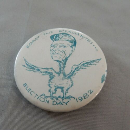 Title (ebay affiliate link): 1982 VINTAGE ROAST THE REAGANITES POLITICAL CAUSE ANTI REAGAN PINBACK BUTTON