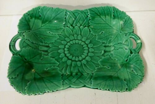 ANTIQUE WEDGWOOD MAJOLICA GRAPE VINE LEAF BASKET WEAVE BOWL PLATTER TRAY