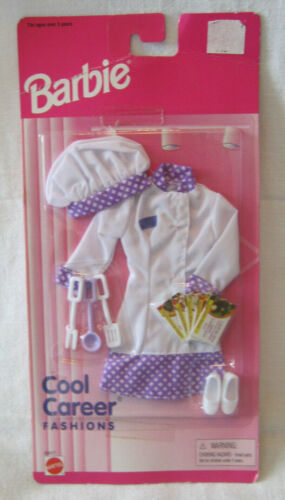 Title (ebay affiliate link): NEW SET 1996 BARBIE FASHION COLLECTIBLE ~ WHITE w/PURPLE TRIM CHEF''S OUTFIT