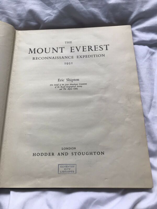 Title (ebay affiliate link): The Mount Everest Reconnaissance Expedition 1951 book by Eric Shipton