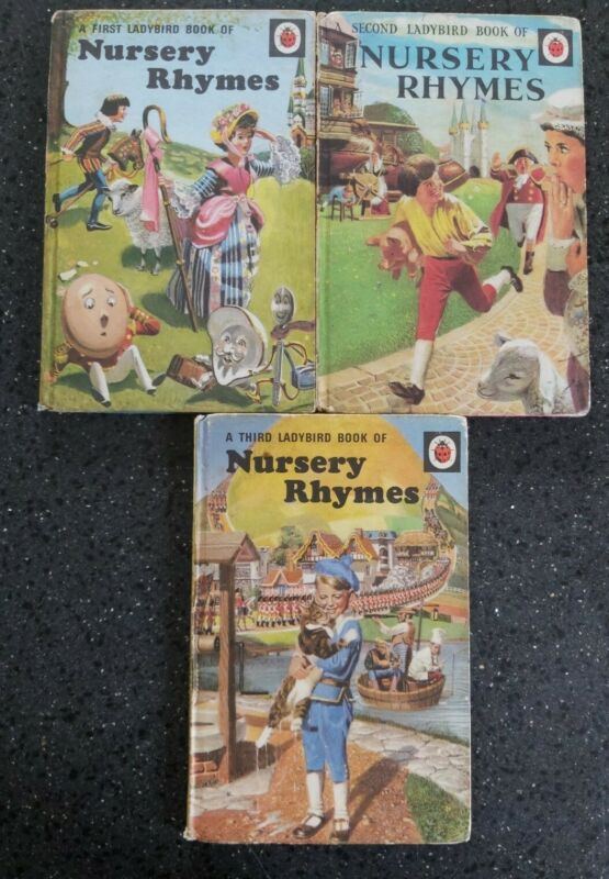 Title (ebay affiliate link): RARE Vintage Ladybird Books First Second Third Book of Nursery Rhymes Series 413