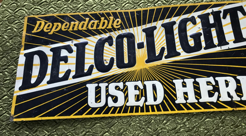 Title (ebay affiliate link): Vintage Original DELCO -LIGHT Embossed Tin Advertising Sign