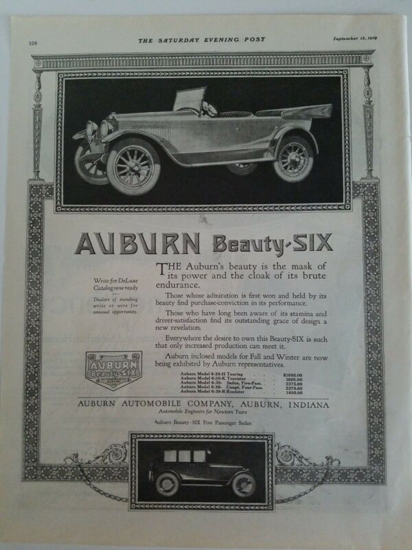 Title (ebay affiliate link): 1919 Auburn Beauty Six convertible car vintage original ad
