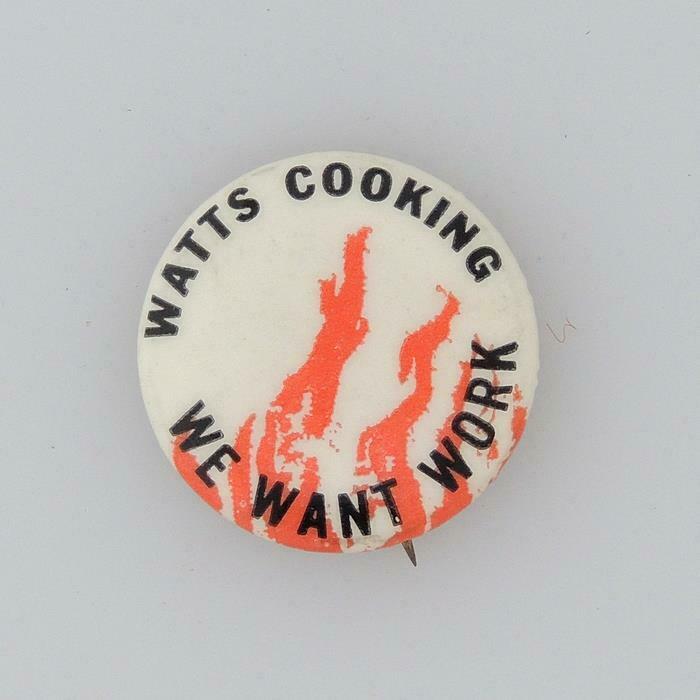 WATTS Cooking We Want Work Civil Rights Riots Vintage Cause Pinback Button