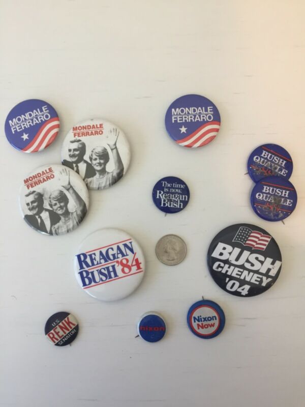 Title (ebay affiliate link): political pins. Historic memorabilia 12 pins. Bush/Reagan/Mondale/Nixon