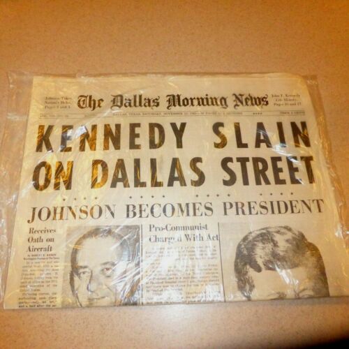 Title (ebay affiliate link): The Dallas Morning News-1963 Kennedy Slain On Dallas Street Original Newspaper