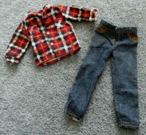Barbie Doll Clothes - VINTAGE KEN SERGIO JEANS w/ RED PLAID SHIRT