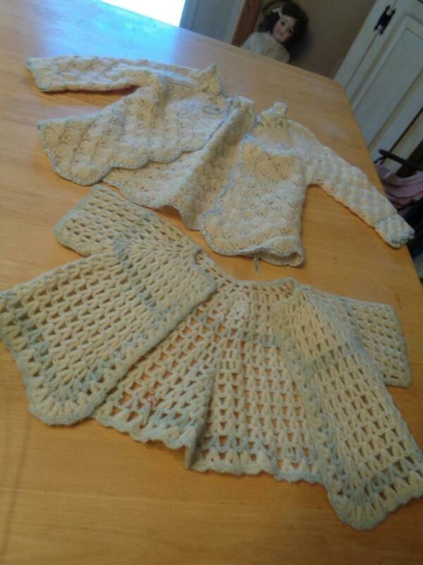Title (ebay affiliate link): 2 Vintage Knit/Crocheted Baby Sweaters~USED~Show Wear~Great For Old Baby Dolls~