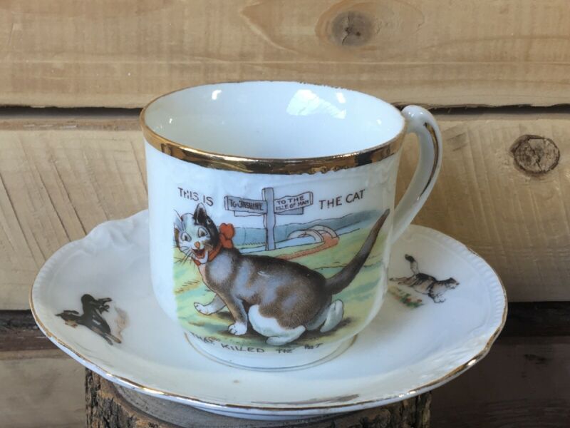 Title (ebay affiliate link): Antique Childs Teacup Saucer Germany-The Cat Who Killed The Rat-Nursery Rhyme