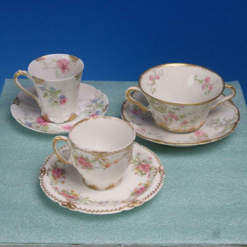 Haviland Limoges France - 2 Cups and Saucers - Cream Soup with Liner