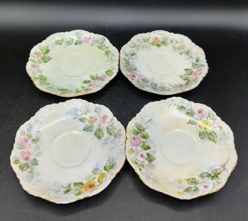 Title (ebay affiliate link): Atq Set (4) Porcelain Hand Painted Floral Saucers Gold Details Signed