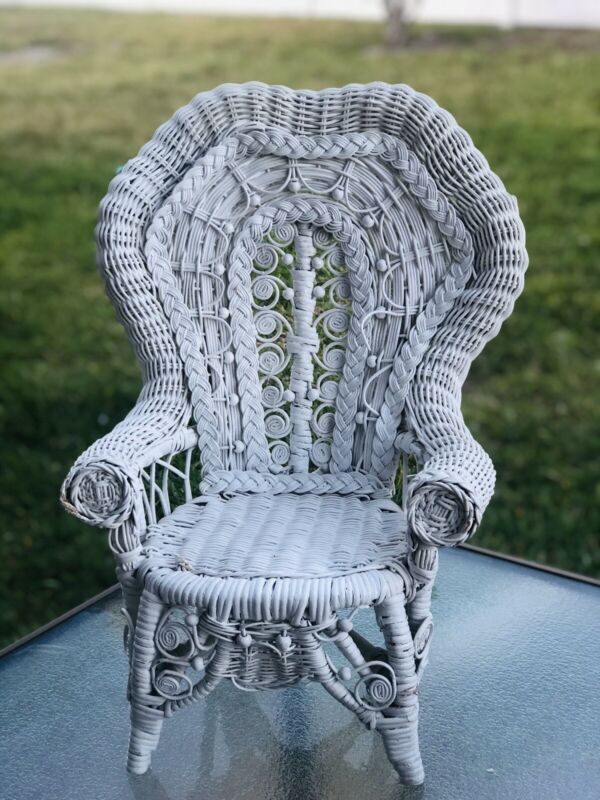 Title (ebay affiliate link): Amazing White Vintage Wicker Chair, 18" Doll Detailed