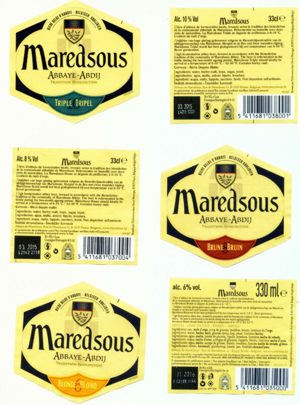 6 x MAREDSOUS (BELGIUM) BEER LABELS