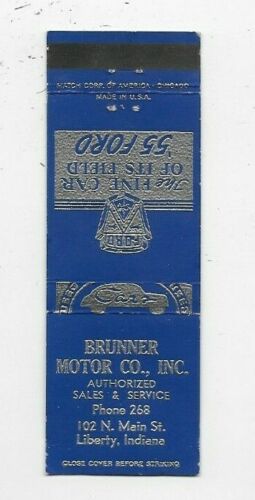 1955 Matchbook Cover Brunner Motor Co Liberty IN Ford Dealer #1356