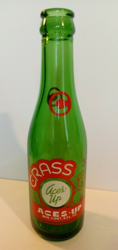 Vintage 1962 CRASS Aces-Up 6 oz. Soda Bottle Green Coca-Cola Excellent Duraglass