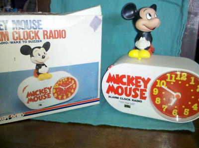 Antique Mickey Mouse Alarm Clock AM Radio 1960s w/box