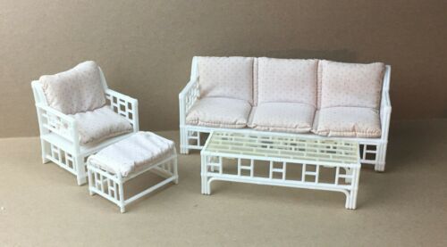 Vintage 1985 Barbie Multi-Toys Outdoor Furniture 4 Pieces & Cushions Faux Rattan