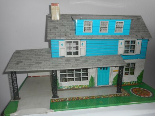 Vintage Marx''s Metal Litho 2 Story Colonial Dollhouse w/Carport some furniture