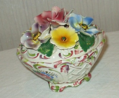 Title (ebay affiliate link): Capodimonte bowl with floral lid made in Italy vintage