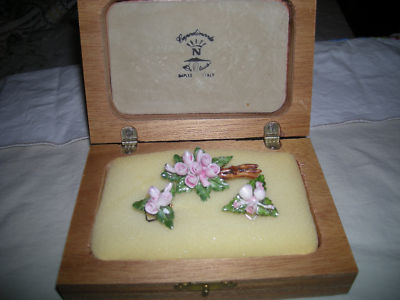 Capodimonte Porcelain Rose Pin & Earring Set - Repair