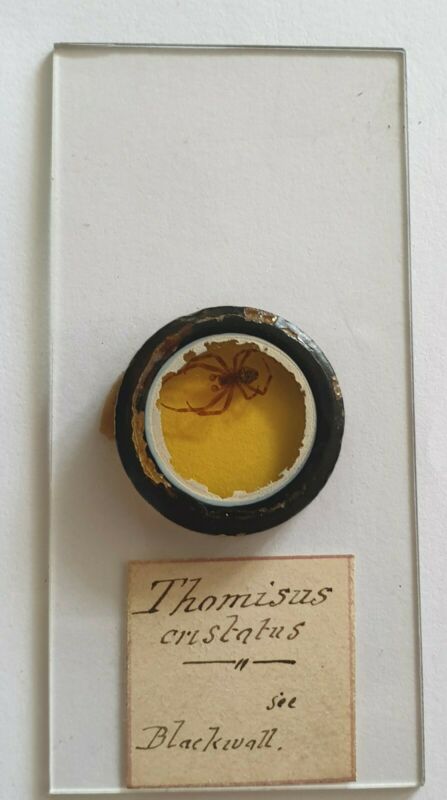 Title (ebay affiliate link): VERY FINE ANTIQUE OVERSIZED WHOLE INSECT MICROSCOPE SLIDE "THOMISUS CRISTATUS"