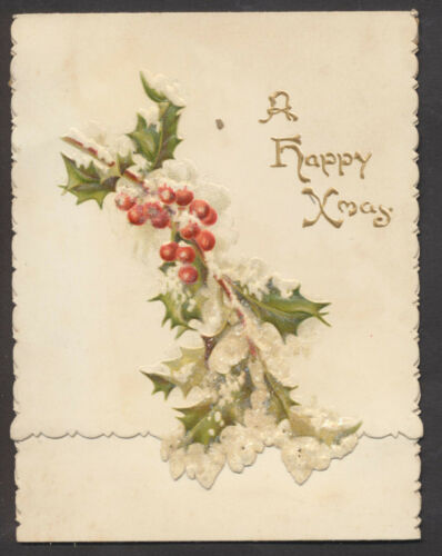 Title (ebay affiliate link): C6206 Victorian 2 Tab Folding Die Cut Xmas Card: Snow on Holly Bough, Glitter