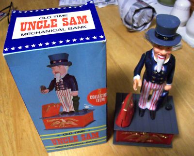 VINTAGE TOY UNCLE SAM PLASTIC BANK, WITH THE BOX