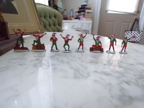Vtg Heinrichsen Germany Flat Lead Figurines 8 Santa''s Elfs