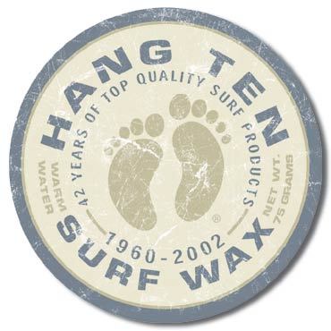HANG TEN SURF WAX ROUND TIN SIGN - 1011