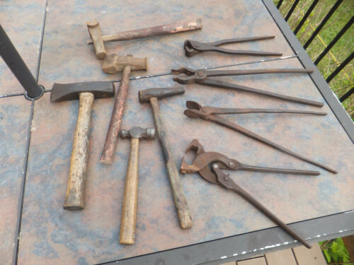 Title (ebay affiliate link): Large Vintage Primitive Lot of Blacksmith Farrier Tools Hammers, Pliers, Tongs