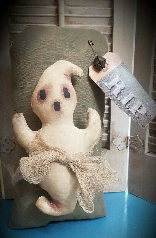 Title (ebay affiliate link): Primitive Halloween Ghost Ornie w/ Headstone ~ Prim Doll ~