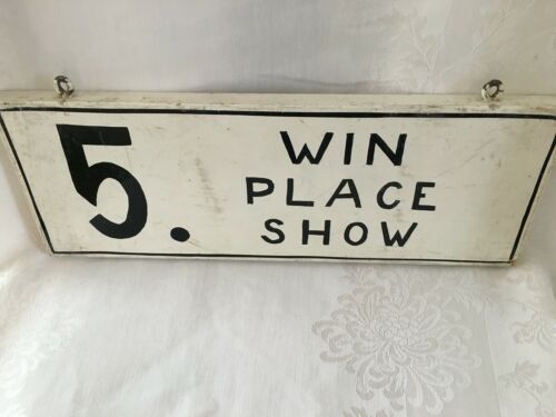 EARLY OLD ANTIQUE HORSE RACE PAINTED WOOD WOODEN SIGN WIN PLACE SHOW