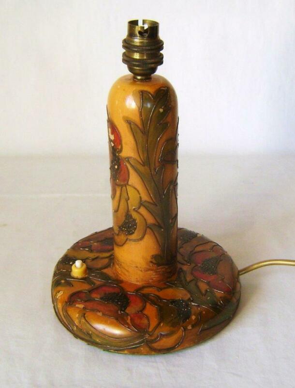 Vintage Art Deco Table Lamp Base Turned Beech with Tube lined Poppies A/F