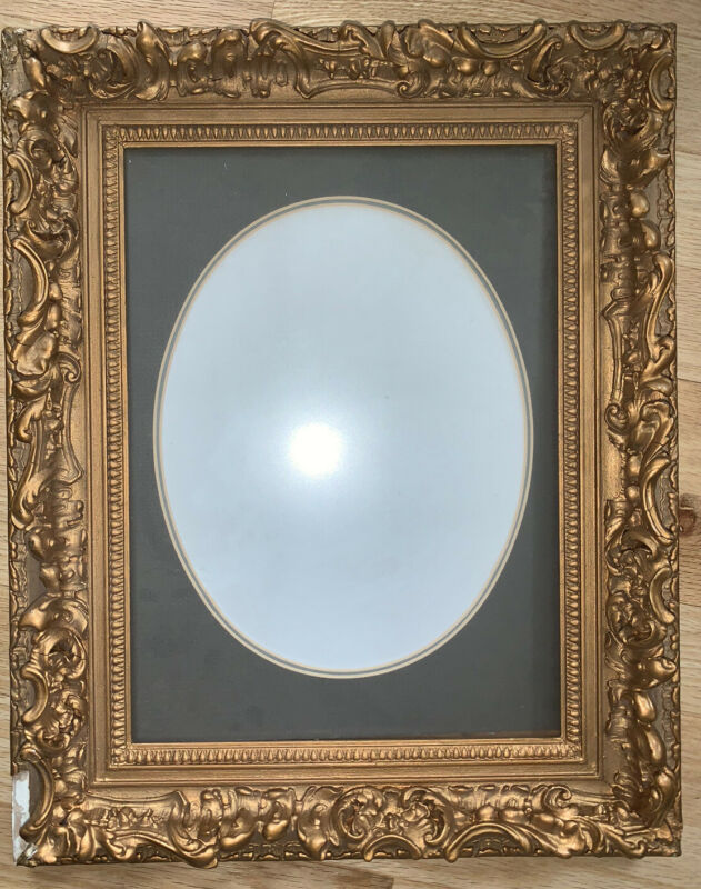 Antique Gold Gesso Ornate Picture Frame Matted With Oval Opening
