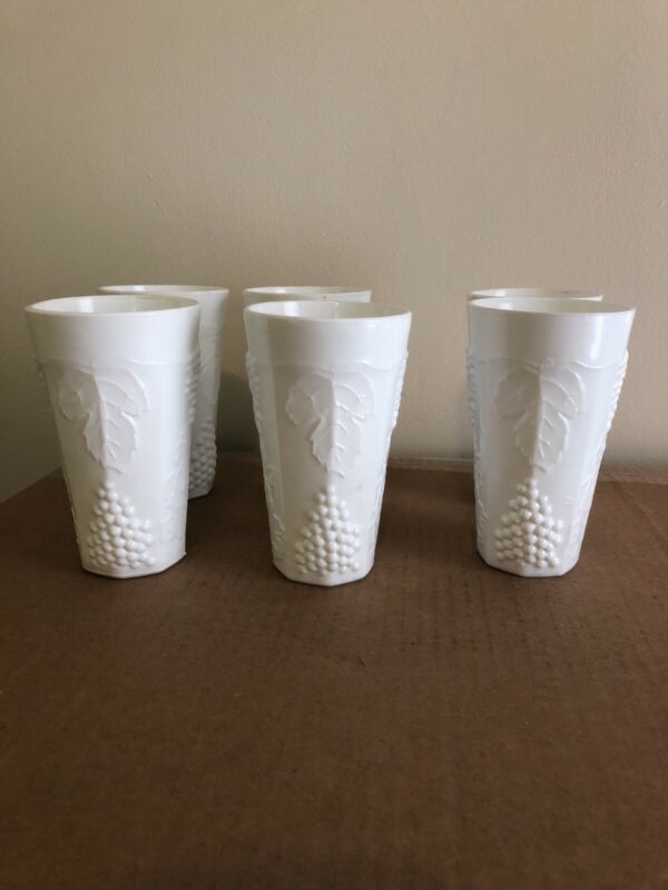 Title (ebay affiliate link): Vintage Indiana White milk Glass Paneled Grapes & Vines glass tumbler Lot Of 6