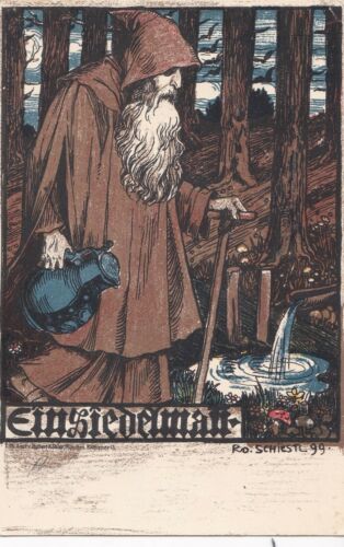 Title (ebay affiliate link): R.Schiestl Old man with a pitcher and walking stick by a spring