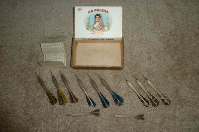 Vintage Needle Darts w/ Game Instructions & Cigar Box