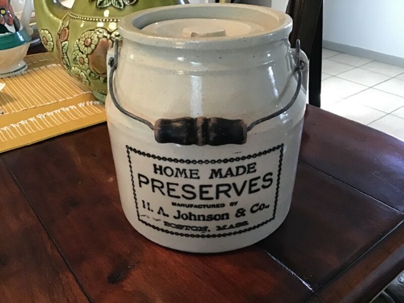 Title (ebay affiliate link): Antique Collectible Crock W/lid H.a. Johnson & Co. Preserves Boston, MASS 1896